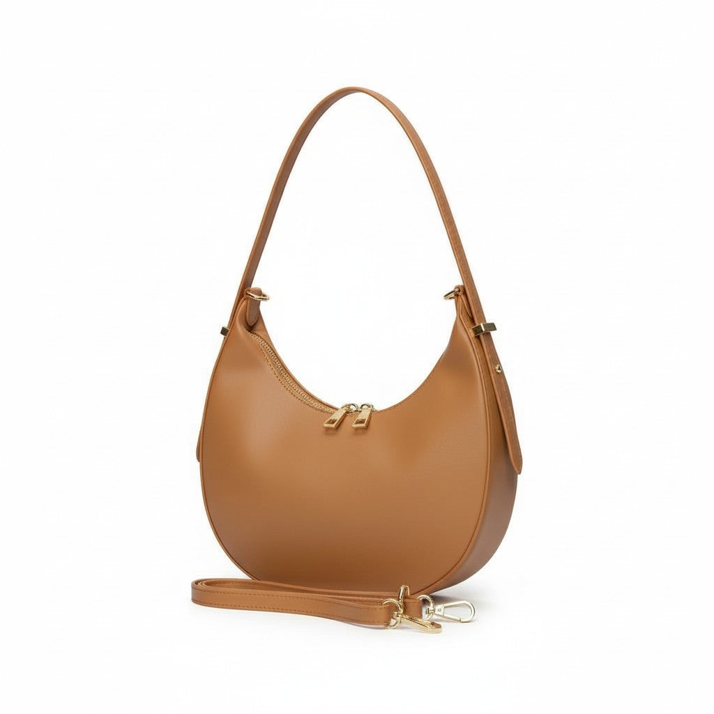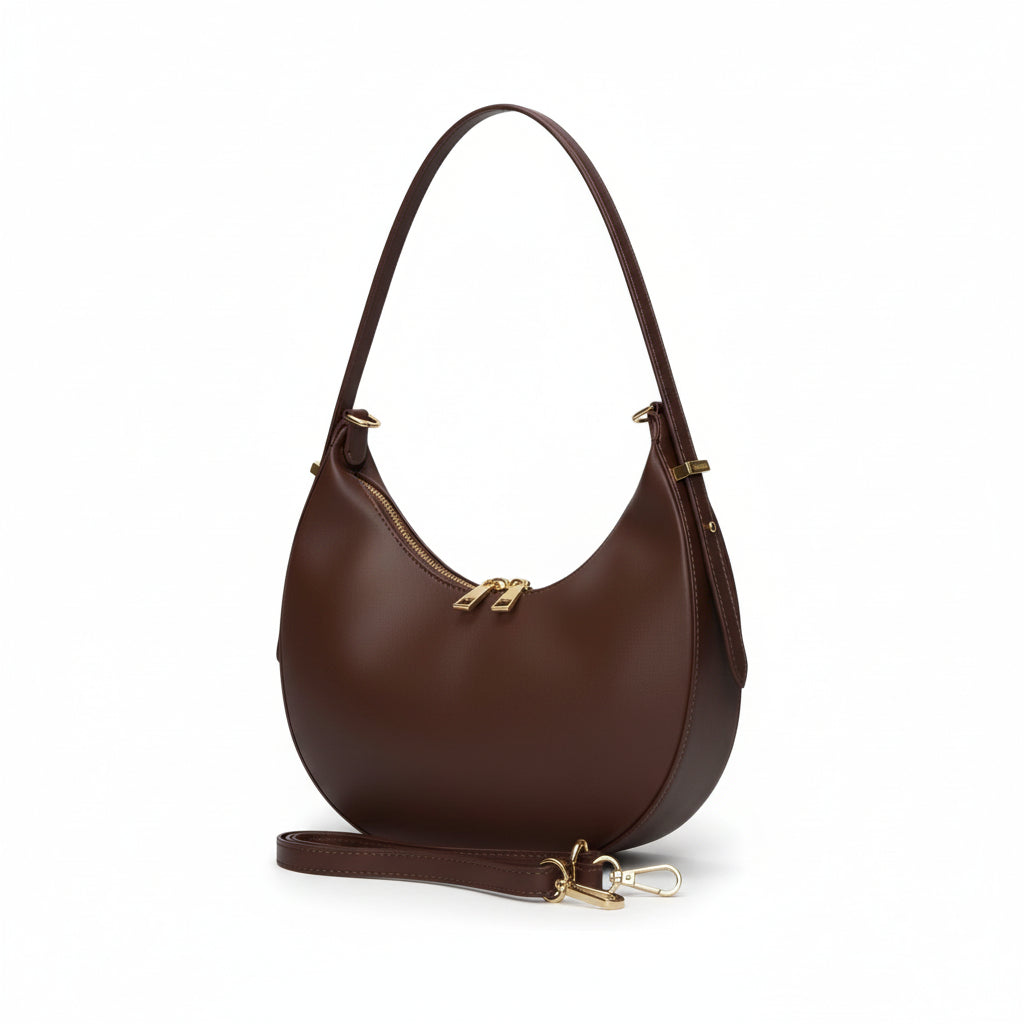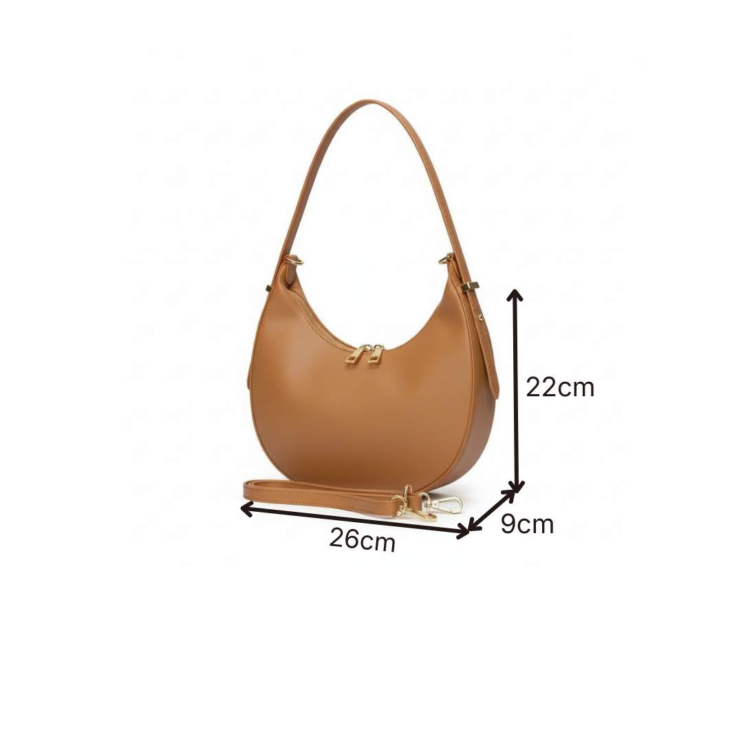 - Formato hobo de media luna, cómodo y favorecedor.